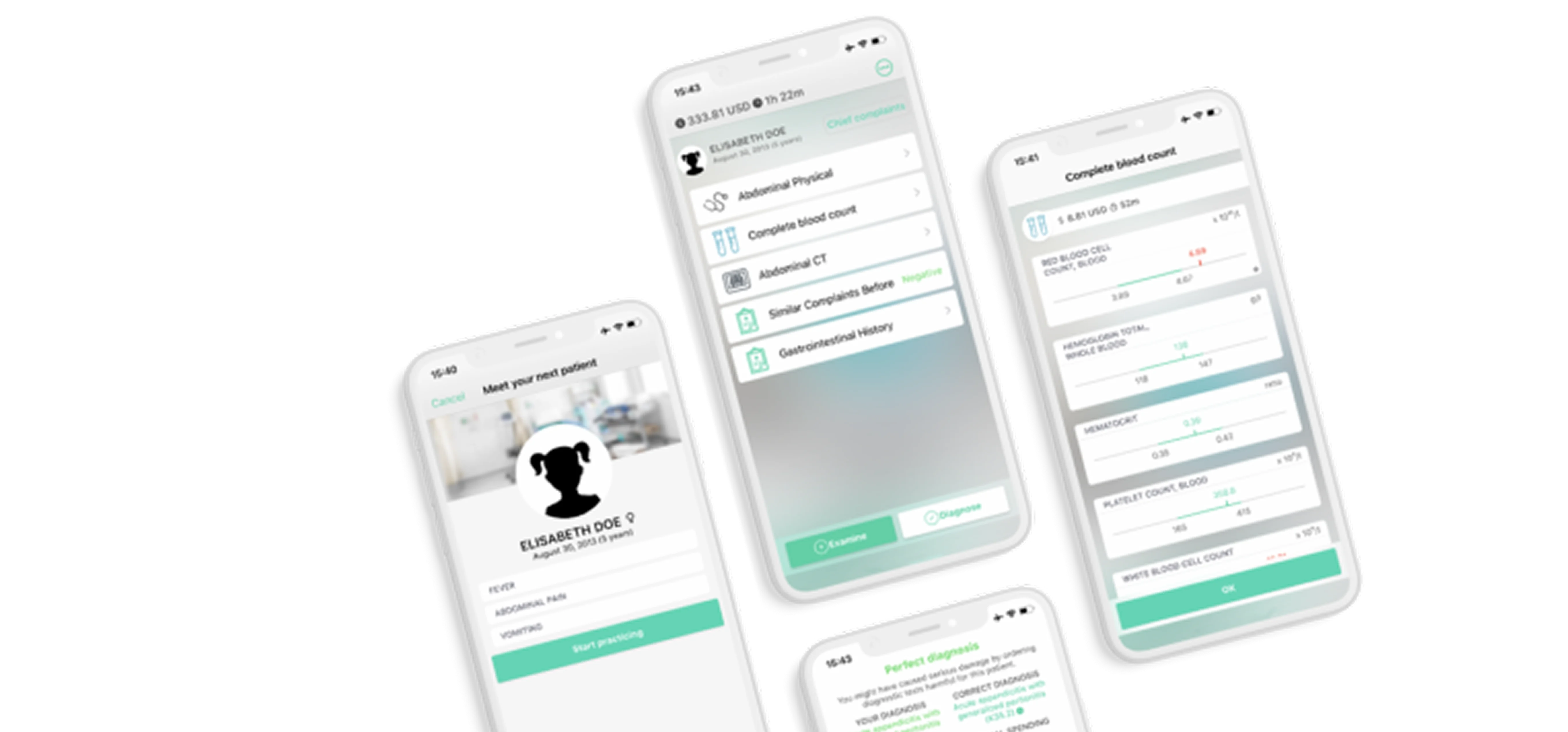 The medical students / or anyone / who uses the app is taking the path of a real doctor in a primary care setting. You start from the point where the patient comes in, tells you their complaints up until the point where you have the correct diagnosis of the virtual patient. Anything that happens within this situation is monitored and measured for later evaluation and feedback.